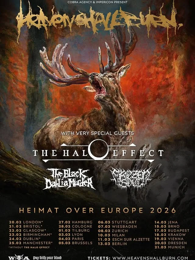 On the back of a very successful release of their tenth album titled “Heimat”, German extreme metal veterans Heaven Shall Burn are embarking on their "Heimat Over Europe" tour in early 2026, featuring headline shows across the UK and Ireland in February with support from The Black Dahlia Murder and Frozen Soul.