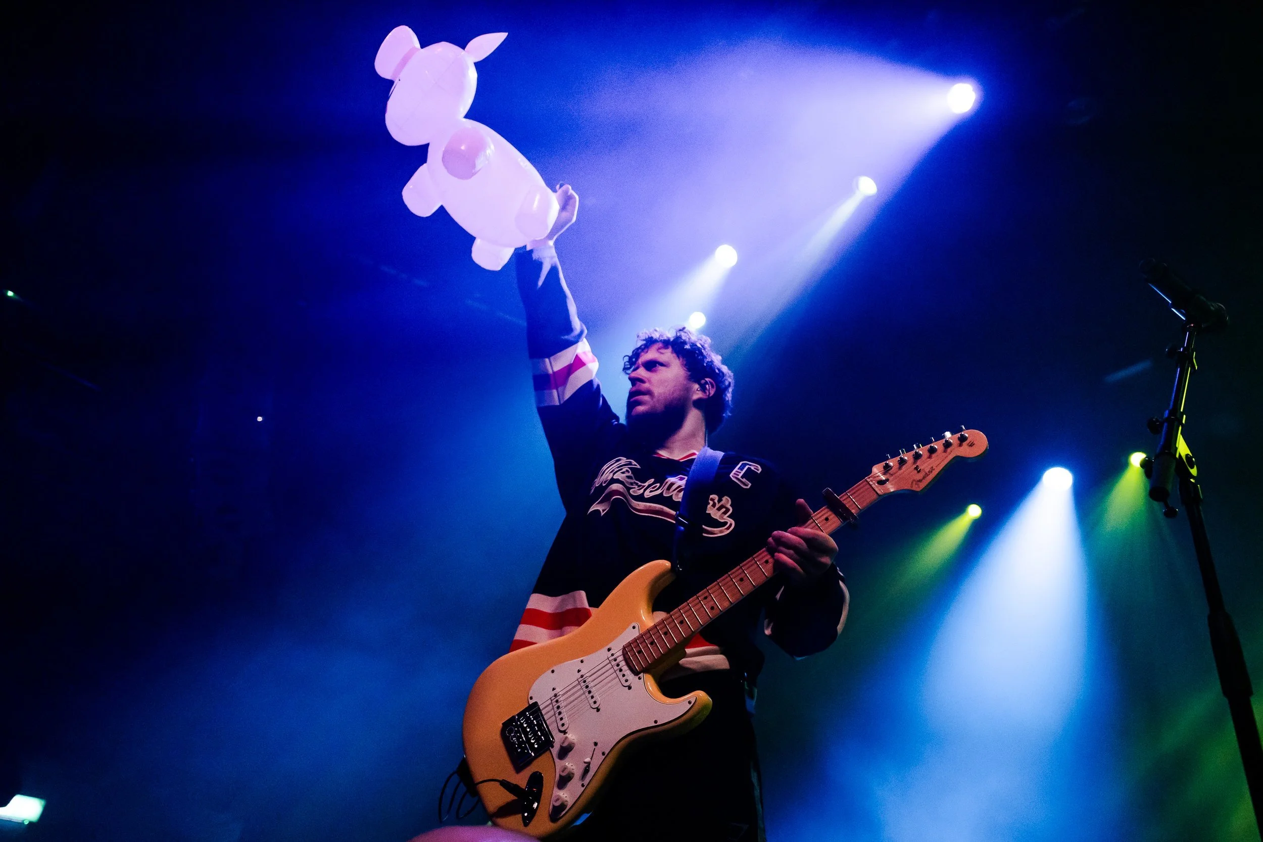 First up were local talent, South Arcade, a band of youngsters from the UK who became viral for videos of their band practices, having also performed at BBC’s Radio 1. The band’s stage presence is magnetic, with the ambient lights exaggerating their unique musical style that comprises of heavy riffs, clean female vocals and mosh-tastic hooks. People on the barrier were not only signing along to the lyrics, but were also joining the moshpit in the middle of the room. Brining a pop-punk Y2K energy and vibe to the mix, their setlist comprised of ‘2005’, ‘Nepo Baby’, a Justin Timberlake cover of ‘SexyBack’ and ‘Moth Kids’ with the audience chanting along to the words ‘misunderstood, overlooked, tired and hopeless’. The set ended on a bang with ‘Stone Cold Summer’, as the room was getting fuller and hotter ahead of the main event of the night.